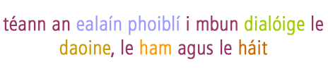 Lainseáil na dTreoirlínte Náisiúnta i gcomhair na Scéime Céatadán ar son na nEalaíon Is é aidhm na dtreoirlínte seo ná bunghnáthaimh oibriúcháin a leagan amach le haghaidh Ranna Rialtais, comhlachtaí poiblí agus Údaráis Áitiúla atá gníomhach sa scéim. Cuireann siad comhairle bhonnlíne ar fáil ar conas saothair ealaíne a choimisiúnú i gcomhthéacs thionscadail tógála caipitiúla agus leagann síos treoirphrionsabail thábhachtacha i gcomhair an phróisis uile, mar shampla an gá le ham a sholáthar i gcomhair na dialóige idir na trí chomhpháirtí lárnacha i gcoimisiúnú na healaíne poiblí - an t-ealaíontóir, an coimisinéir agus an pobal. Is í an Roinn Ealaíon, Spóirt agus Turasóireachta a d'fhorbair agus a d'fhoilsigh na treoirlínte seo, an chéad chéim i dtreo cur chuige náisiúnta i leith na healaíne poiblí in Éirinn. Tuilleadh eolais Íoslódáil na Treoirlínte